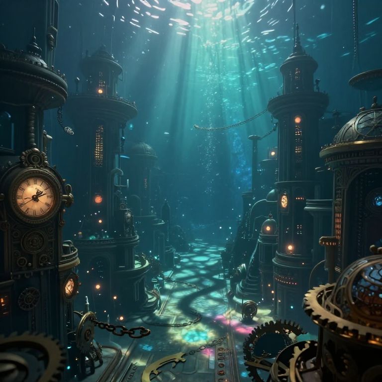 A captivating view unfolds into an intricate maze of machinery and organic forms, blurring the boundaries between technology and nature. From a low vantage point, the eye is drawn into a complex web of gears, tubes, and brass components reminiscent of a steampunk aesthetic. The scene is illuminated by flickering flames that cast elongated shadows, adding to its air of mystery and subtle risk as one ventures deeper into this enigmatic world. This fantastical landscape, brimming with concealed truths and surprising revelations, beckons the explorer onward into its labyrinthine heart where the ordinary intertwines with the extraordinary in an unforgettable fusion.