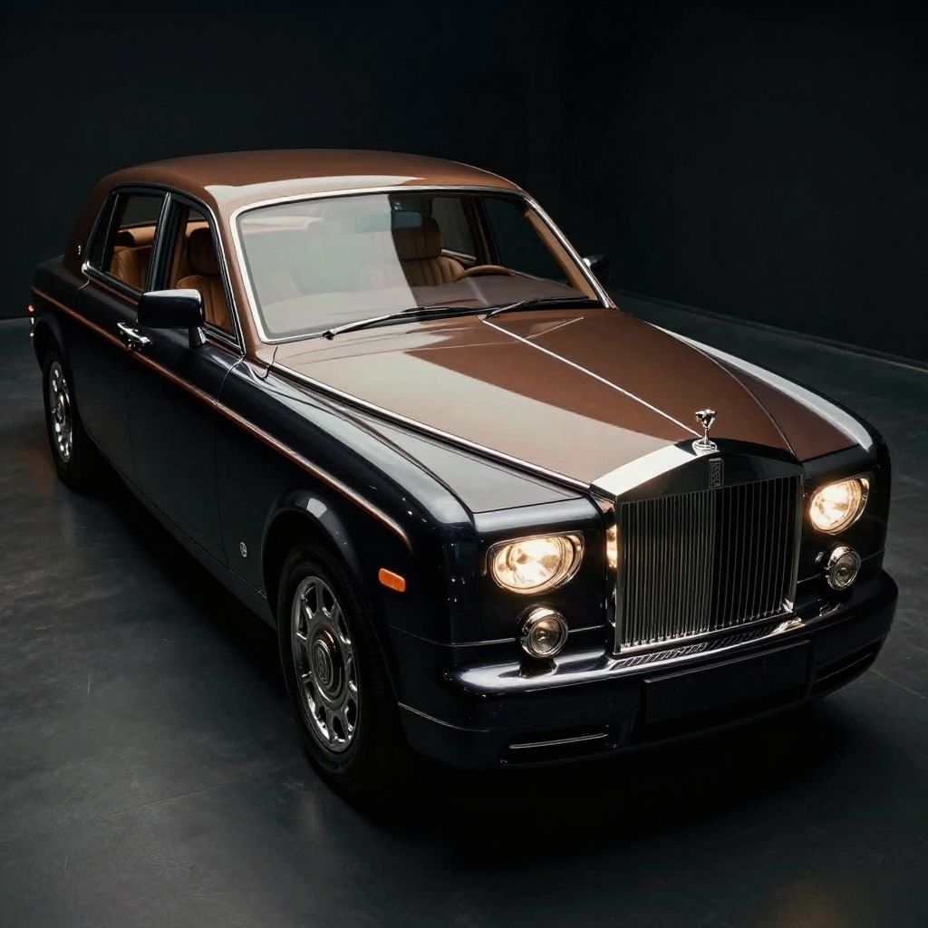 ((raw photo)), cinematic film still ((Top-Down Perspective shot)), photo of Rolls-Royce Phantom VIII - The Rolls-Royce Phantom VIII represents the epitome of luxury motoring. Featuring imposing dimensions, it commands attention through its presence alone. Standout details include the iconic Pantheon Grille, suicide doors, and intricate coachlines along the body. The interior showcases handcrafted materials, such as leather, wood, and metal accents., realistic, ((photorealistic)) rim lights, dark shadows, cinematic scene, movie shoot, dark, extremely detailed, glass reflection, hard light hard shadows, vellus, subcutaneous veins, shallow depth of field, vignette, highly detailed, high budget Hollywood film, cinemascope, moody, epic, gorgeous
