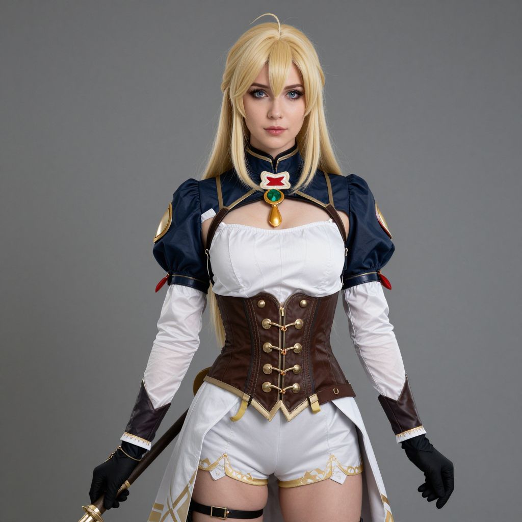 Sexy cosplay woman character wearing Schierke costume. Realistic photo. Jane Doe dressed as Schierke. Realistic photo, caucasian woman, pretty face