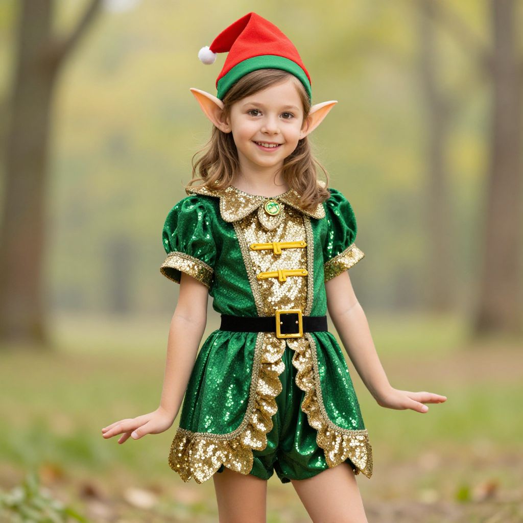 Sequin Elf Girl in Festive Costume