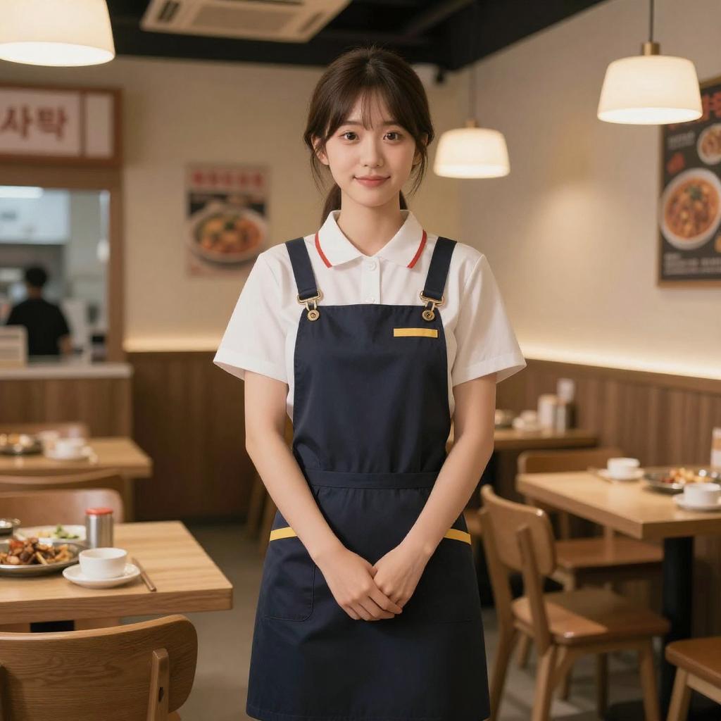 Cinema shot, photorealistic, photography, analog style, best quality, a 3d render, korean bistro, waitress, korean girl