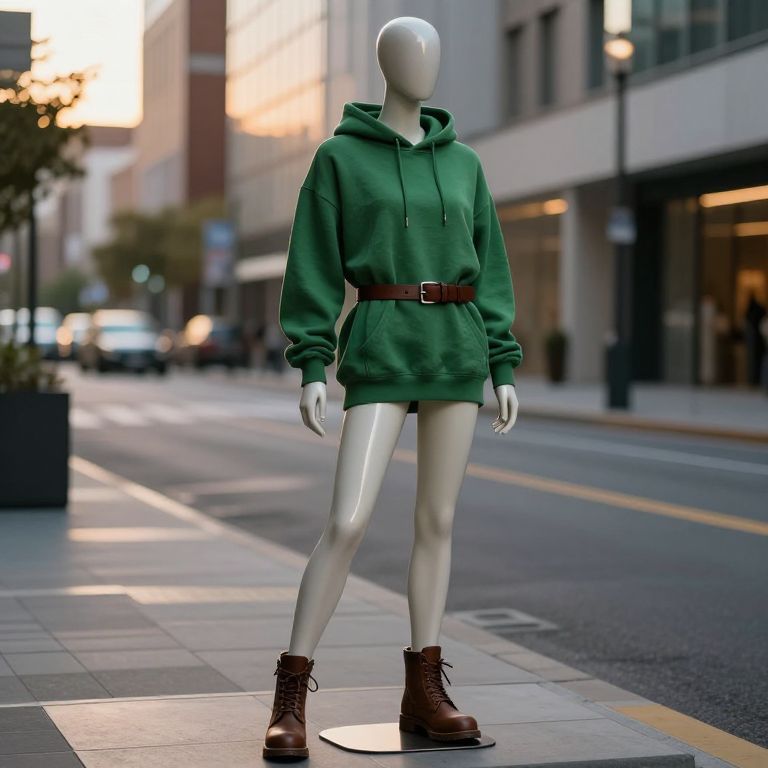 Mannequin in Hooded Robe on City Street
