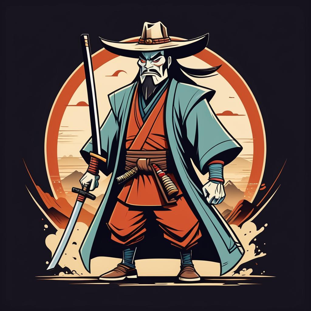 Vintage Western Samurai Cartoon Character