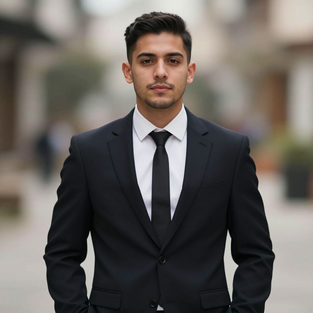 Male wedding attire winter, 1boy, male focus, necktie, blurry background, suit, formal, black necktie, hands in pockets, blurry, black hair, shirt, looking at viewer, jacket, solo, realistic, facial hair, collared shirt, white shirt, black jacket, short hair, bowtie