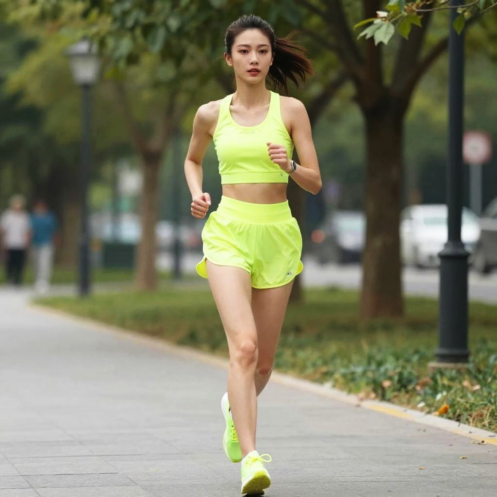 A svelte woman in charcoal athletic wear with a light green accent, black shorts, and lightweight running shoes, lounging in a riverfront seating area with a hammock, visual style: dark horse. Sexy. Pretty face and beutiful eyes