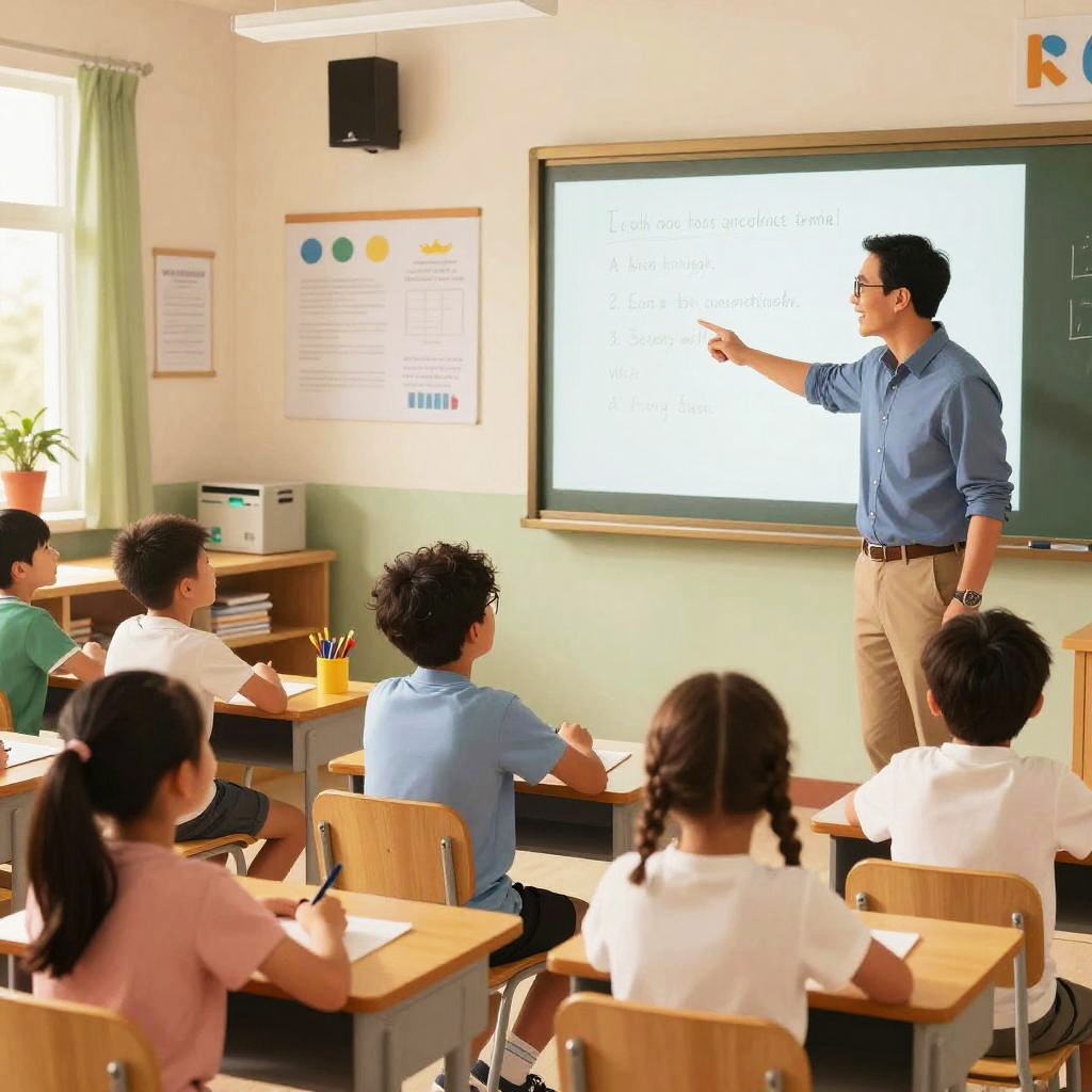 Energetic Elementary Classroom Scene