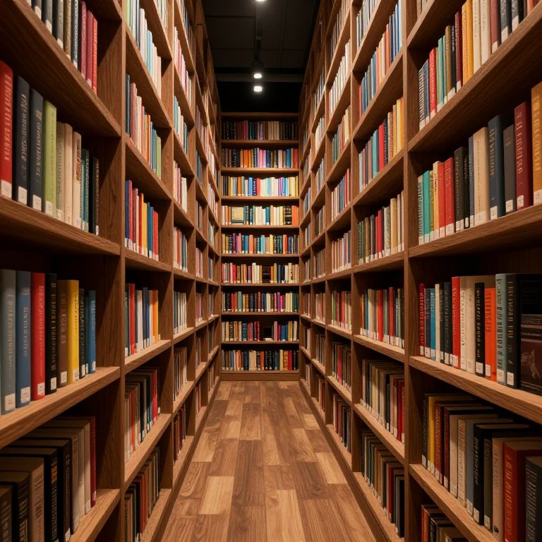 An atmospheric 3D-rendered library corridor bathed in dramatic lighting, featuring rows of wooden bookshelves filled with colorful spines, evoking a sense of mystery and wonder as if each shelf holds a gateway to parallel universes brimming with untold stories.