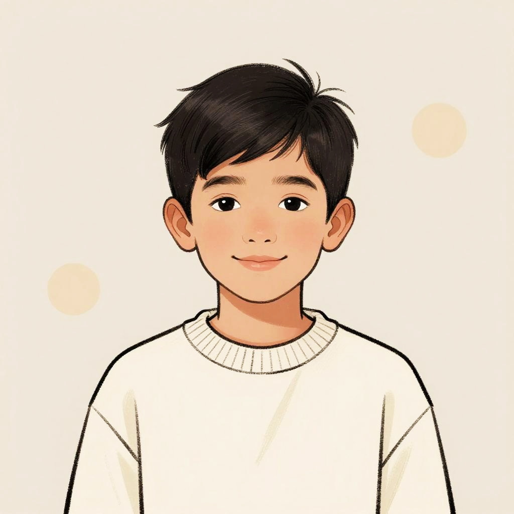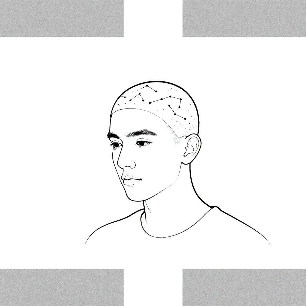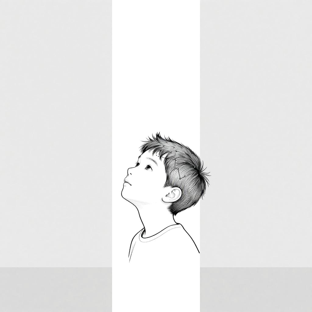 Minimalist Line Portrait of Teenage Boy with Woven Headband