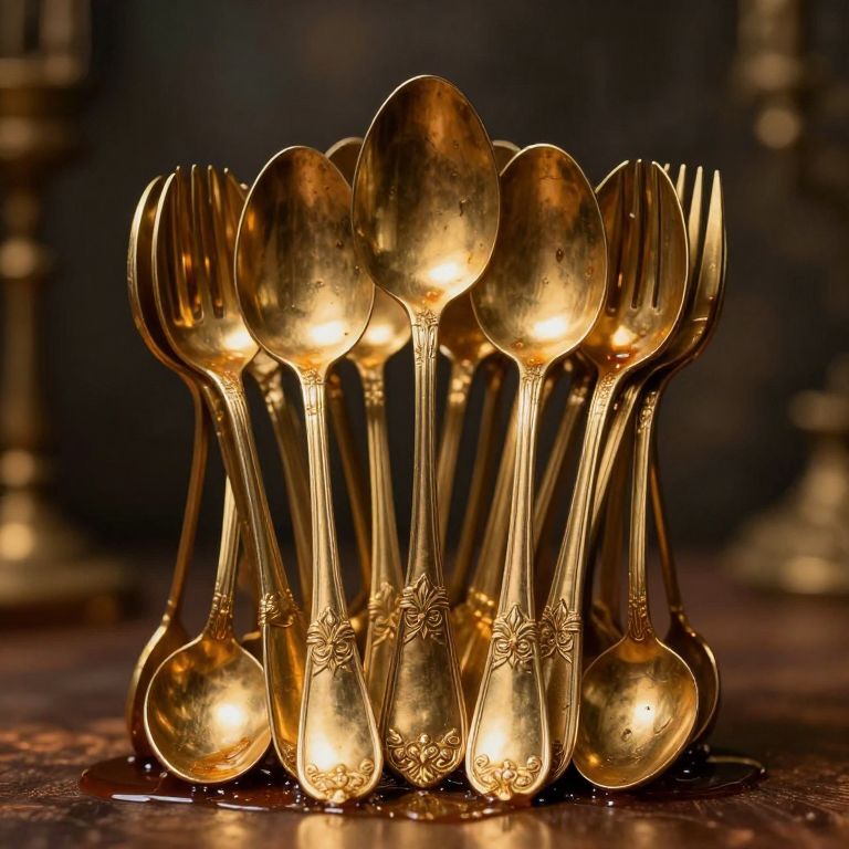 In a realm where every utensil whispers secrets of forgotten rituals, a golden army of spoons stands united, their polished surfaces gleaming with the weight of tradition and the quiet rebellion against conformity, as syrup-scented echoes of history linger in the air.