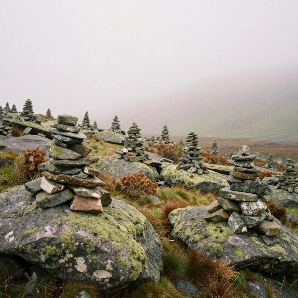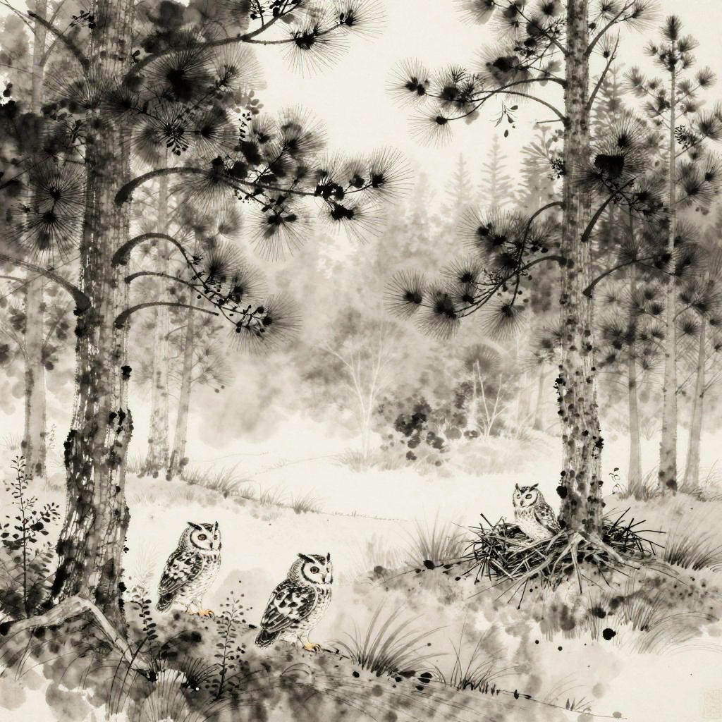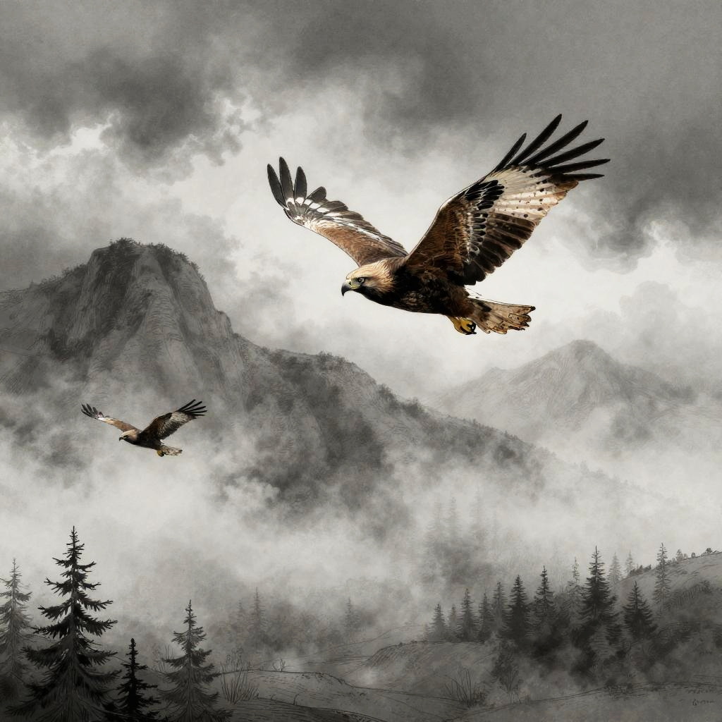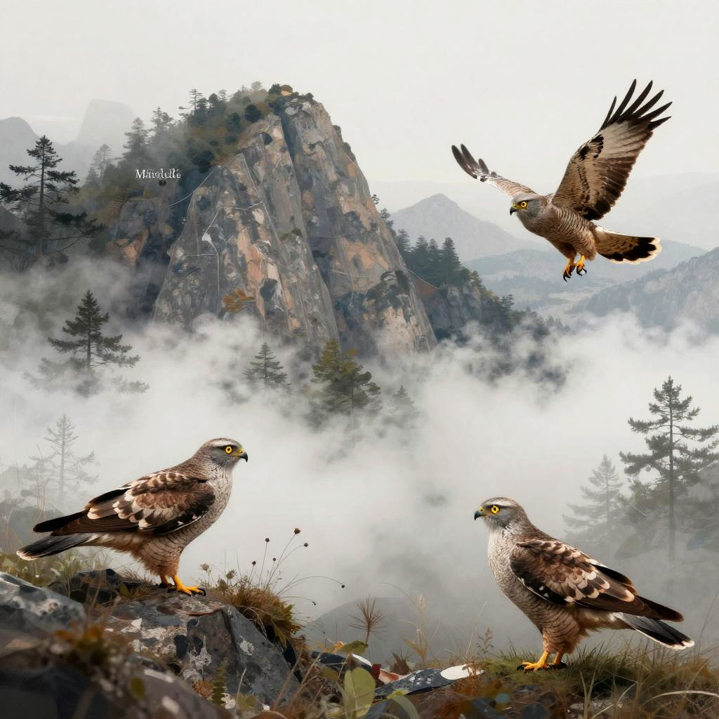 Misty Foothills: rustling birch leaves lazily move across a landscape enveloped in a serene dawn atmosphere, rendered in pastel oil painting. The scene is set against misted meadow expanses whispering the quiet mystery of nature.