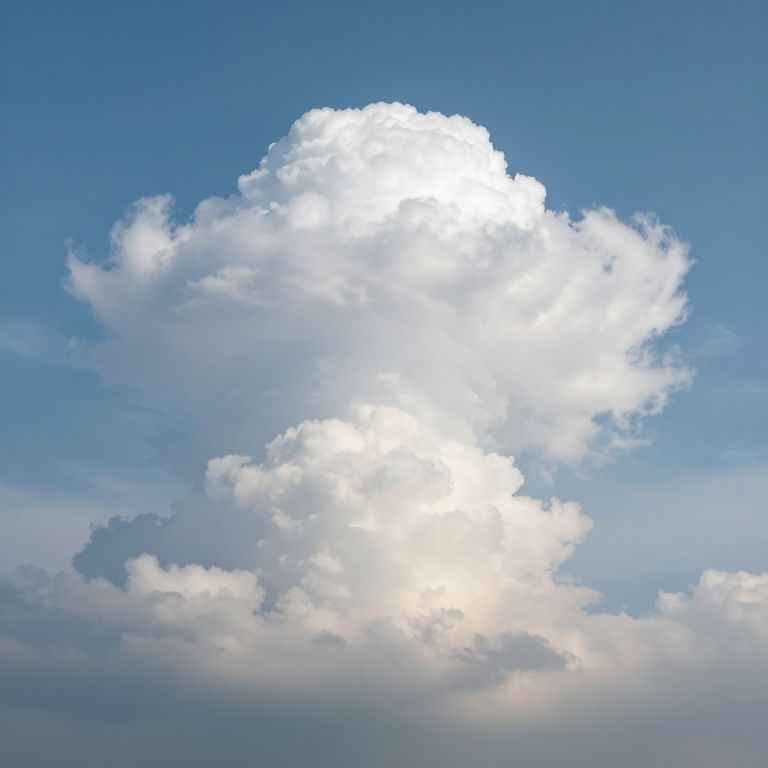A towering, sentient cloud formation ascends majestically against a serene sky, its billowing layers sculpted into ever-shifting, dreamlike landscapes that seem to breathe and evolve in real-time.