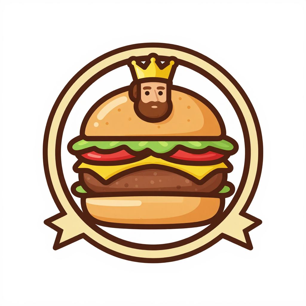 Layer vector logo emblem for a burger restaurant, cartoon style art of a portuguese noble man, royalty, medieval mood,