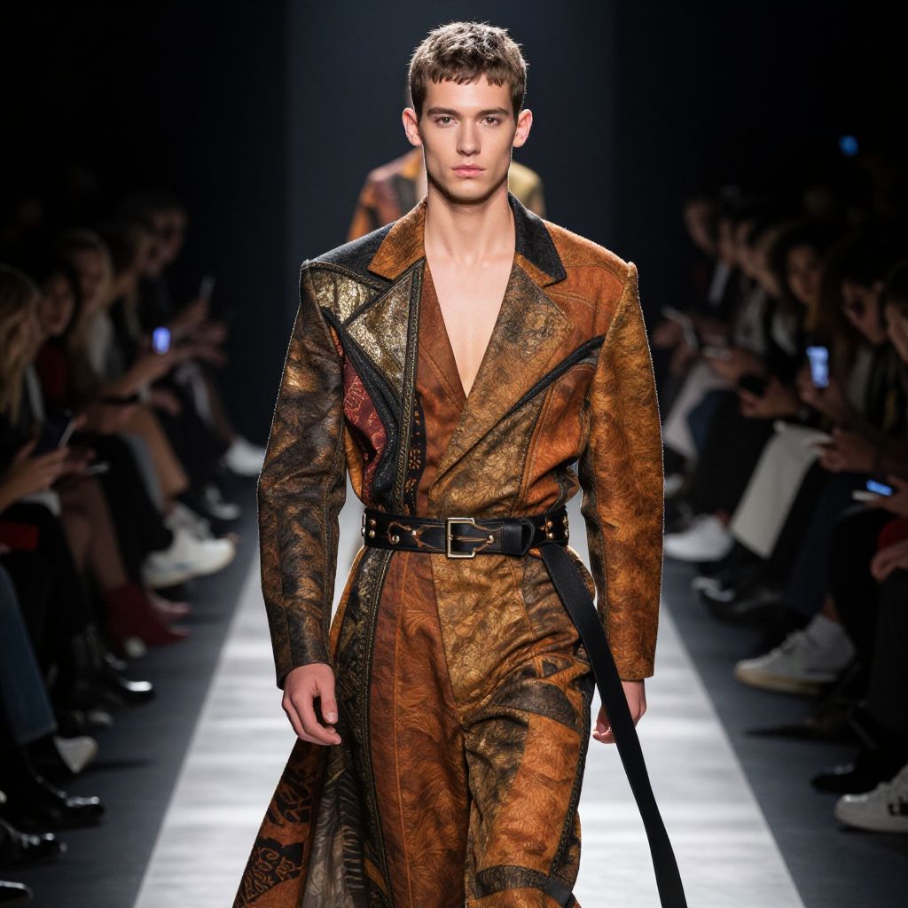 "Design ann demeulemeester style mod down coat on extremely and freakishly tall model, rick owens, h.r. giger, Zdzislaw Beksinski, surreal horror fashion, runway, dynamic composition, unusual angle,"