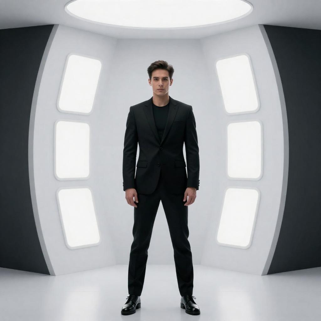 Intense Vigilante Overlooking Futuristic City