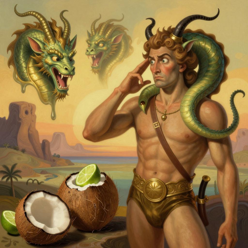 Surrealist Hercules and Lernaean Hydra with Coconut and Lime