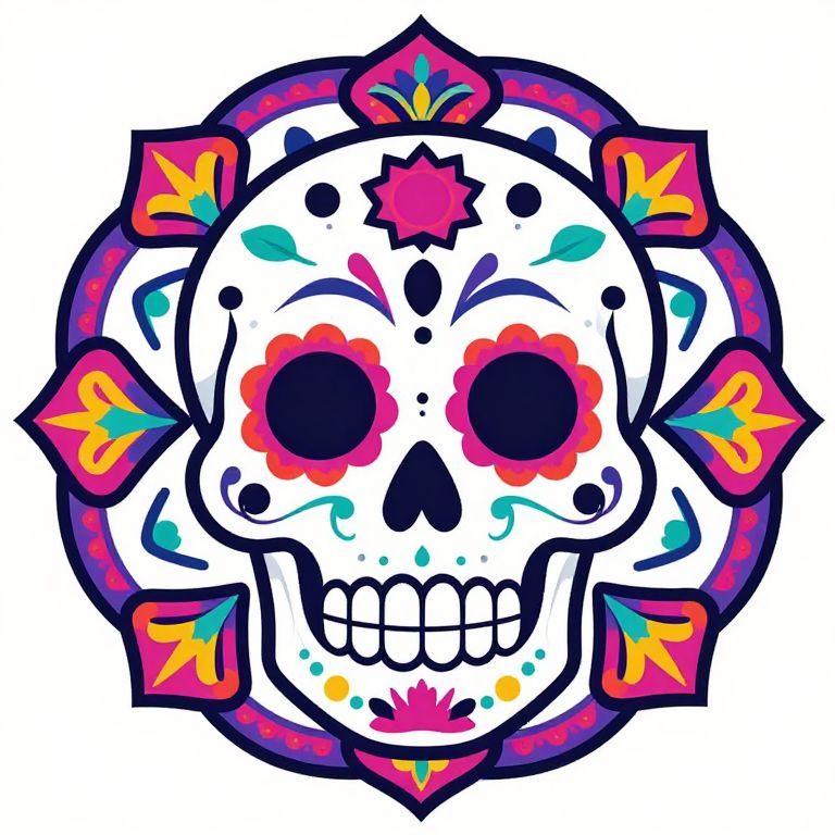 An exquisite Day of the Dead skull mandala invites introspection, blending vibrant patterns with a haunting beauty that whispers of life's transience and the enduring spirit of remembrance.
