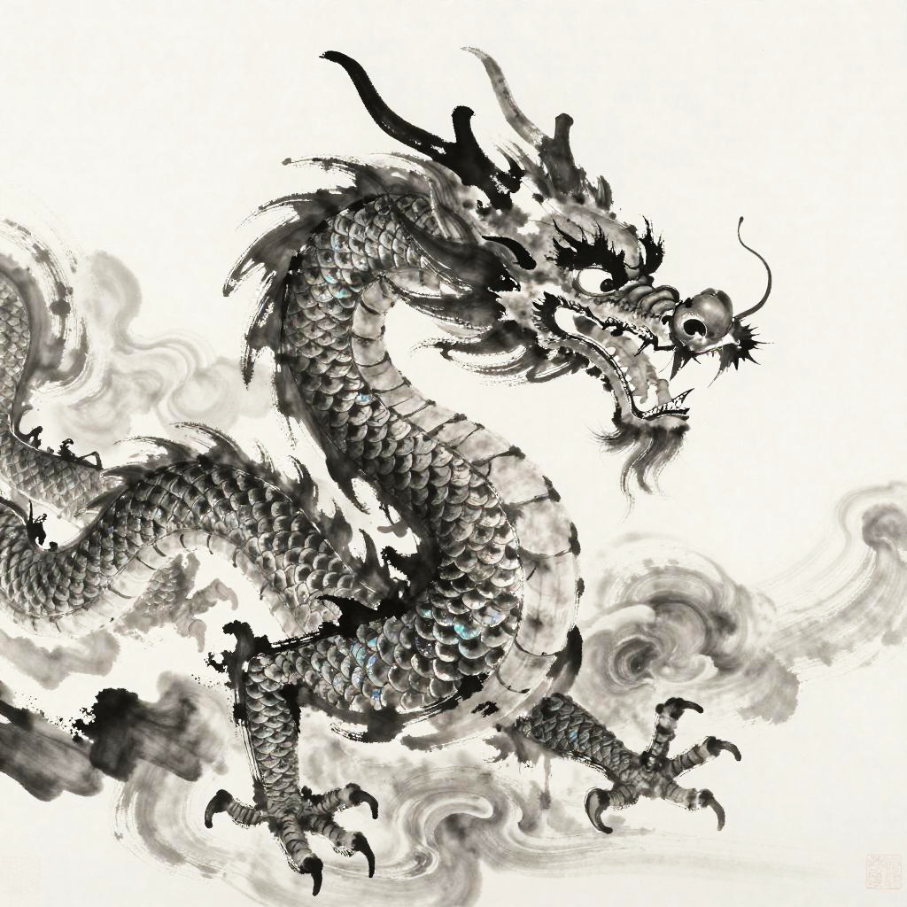 Graceful Chinese Ink Dragon Painting