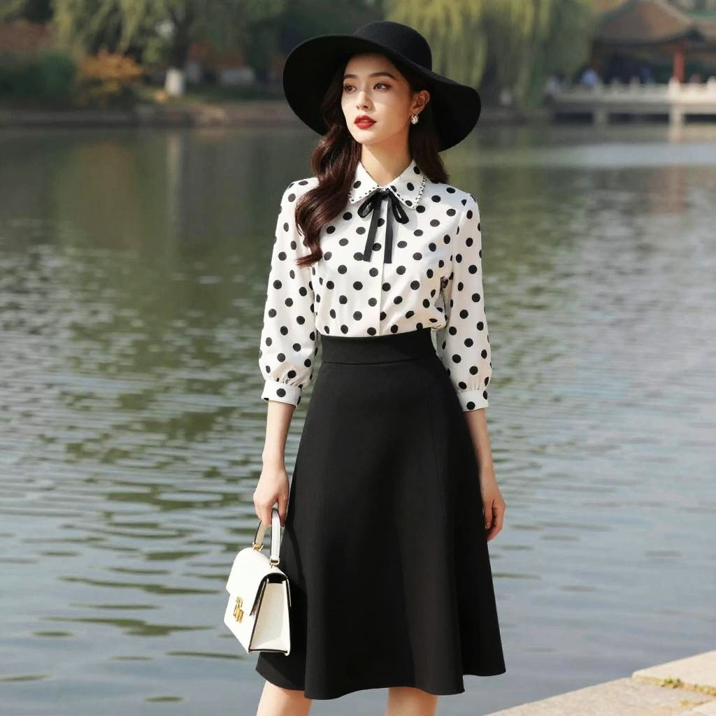 Chic Hourglass Woman in City Park