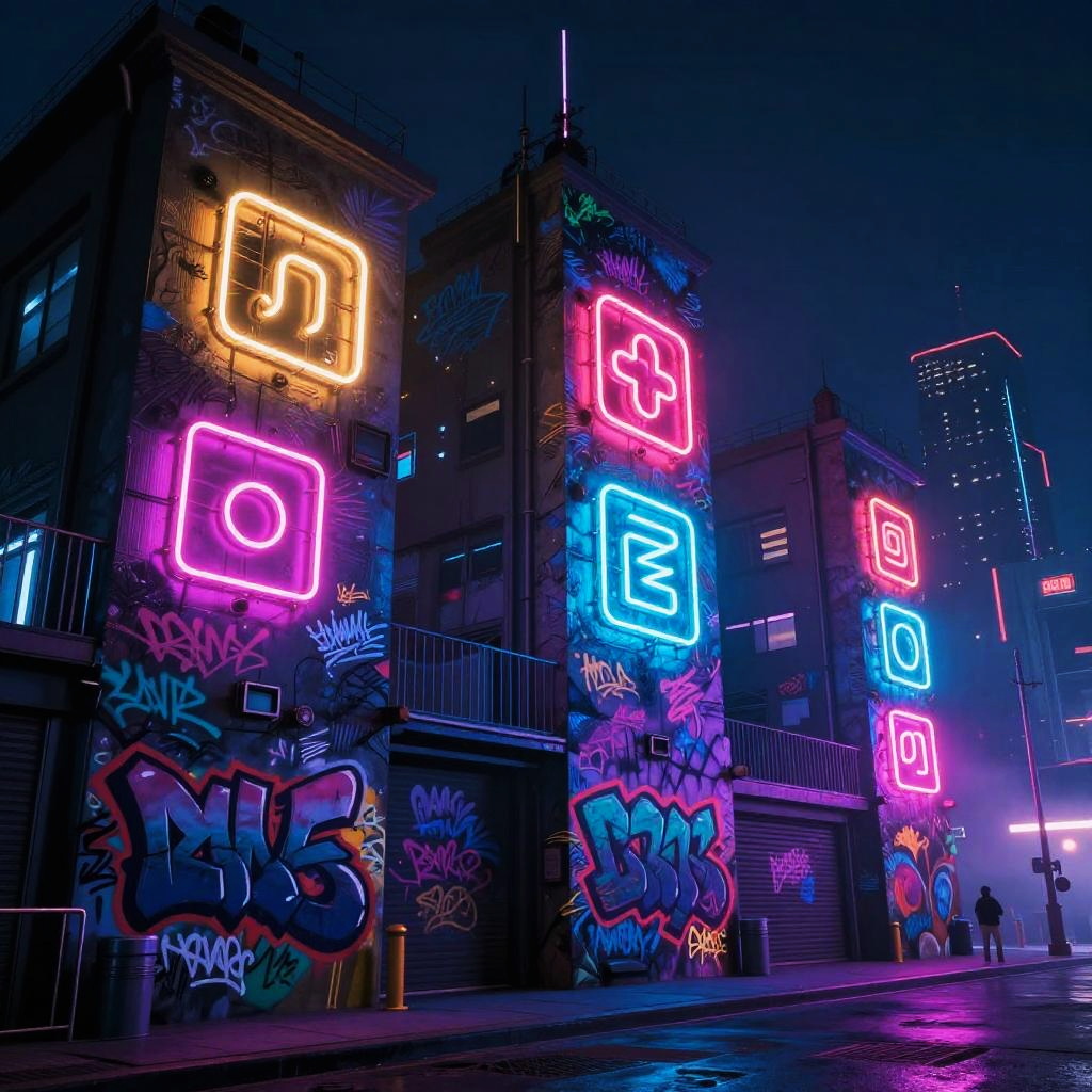 Cyberspace owl eye neon glyph embedded within nocturnal urban park misted with flickering softly lit holograms, digital rain cascading across translucent UI panes, iridescent highlights, wet materials, micro-scratches, volumetric fog, god rays, soft bloom, particle drift, moody reflections; moody neon noir high fidelity style, vibrant cyan–magenta palette, high contrast lighting, ray-traced reflections and refractions, 4K detail, cinematic composition, shallow depth of field, film grain, dynamic shadows, precise color grading, SDXL render