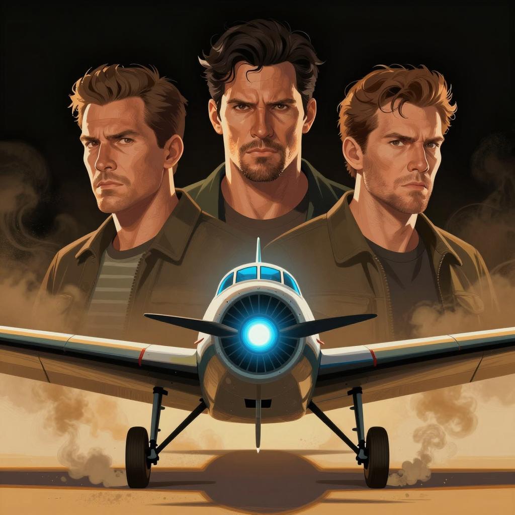 Collage of various elements: central skull with eye in middle, surrounded by fairy, woman in red outfit, another woman, green-eyed eye, monster with snarling mouth, and man with intense expression on the right. Man on left holds small monster. Green and brown background. Illustrative style.