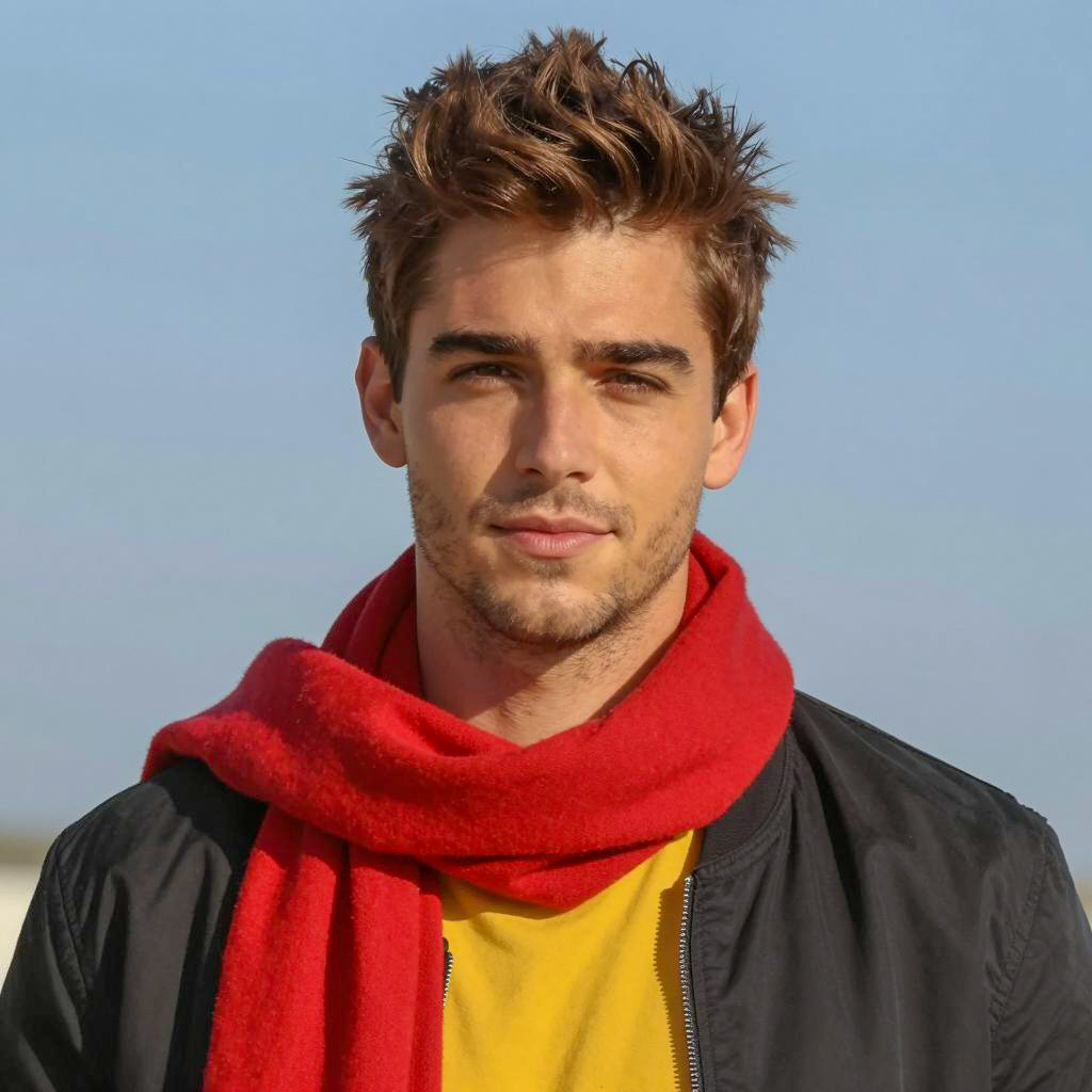 Shirtless man with wet, tousled brown hair and light skin, gazing slightly to the right. Soft lighting highlights his muscular shoulders and chest. Dark, indistinct background. Subtle smile, relaxed expression. Warm color palette. Photograph.