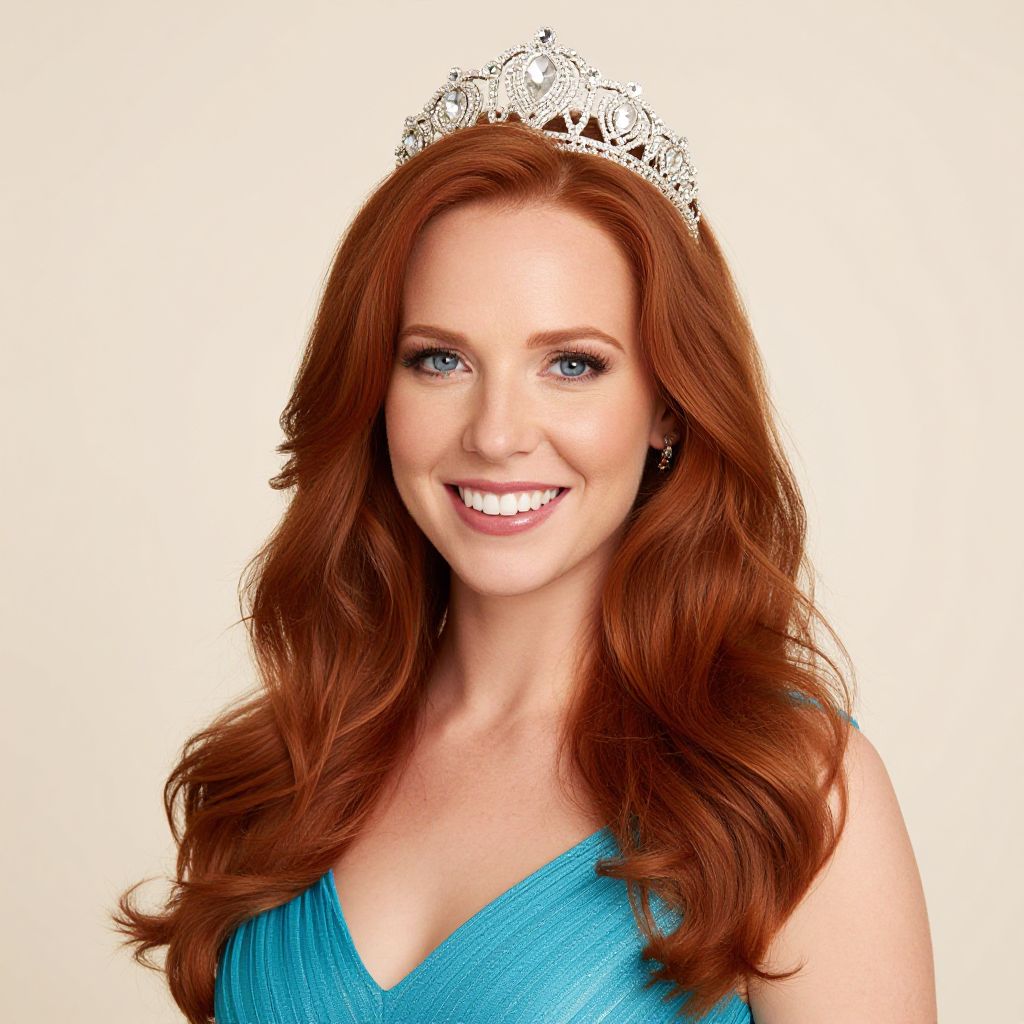 Smiling Blonde Woman in Forest Dress