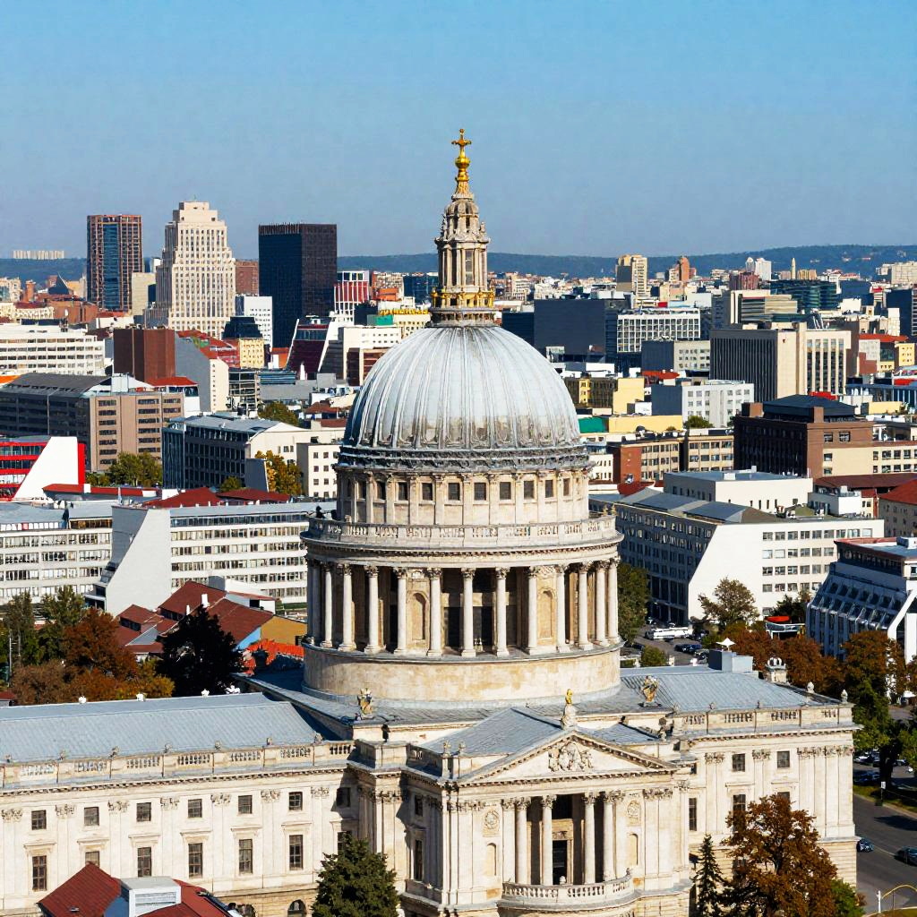 Golden Dome Cityscape from Height