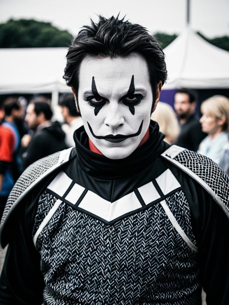 Man in Jersey costume, cosplay festival portrait, realistic style