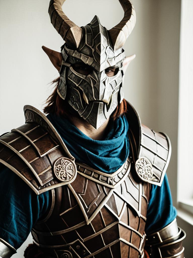 Man cosplay. Wearing The Last Dragonborn costume. Realistic photo. Dressed as The Last Dragonborn --sref 1400