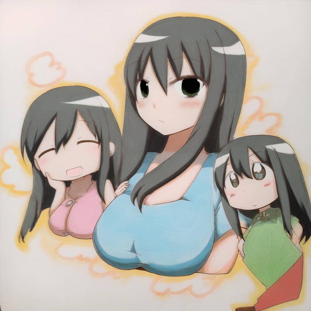 Ohno kanako, genshiken, 1girl, mole under mouth, black eyes, mole under eye, long hair, black hair, large breasts, huge breasts, multiple moles, by artist jako (jakoo21), leet