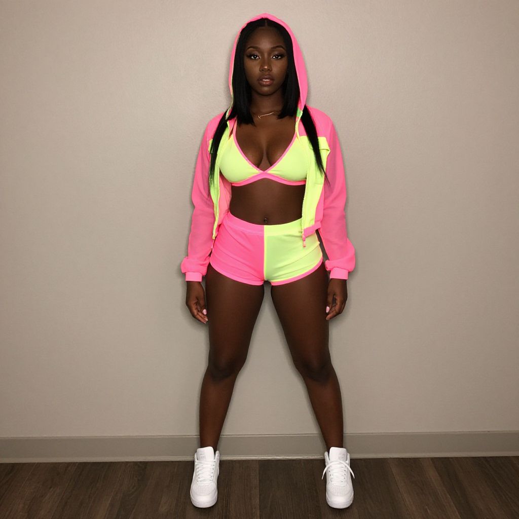 Neon Party Outfit on Dark-Skinned Woman