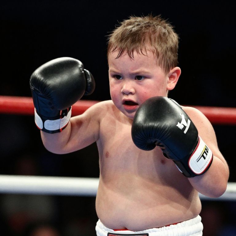 Myth Intense obese baby boxing sports photography, film grain, lit by camera flash, photorealistic, shaky footage, sharp details, horror,