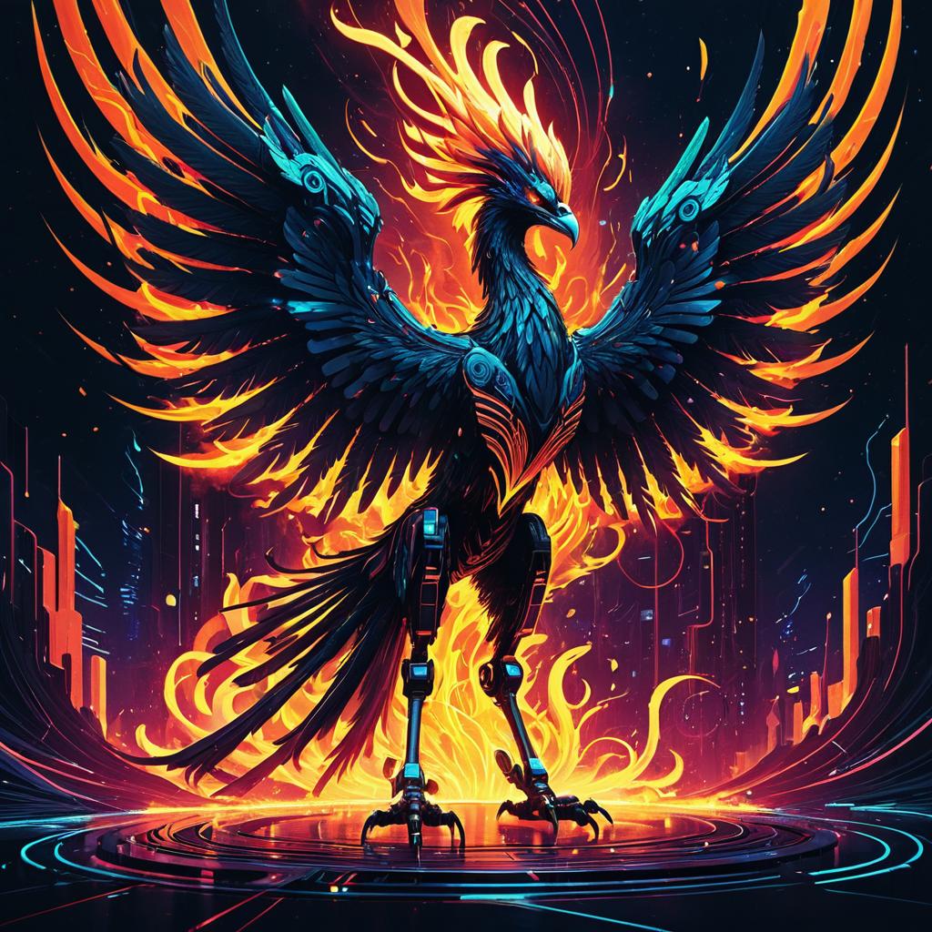 Hyper-detailed Phoenix Illustration with Flaming Feathers