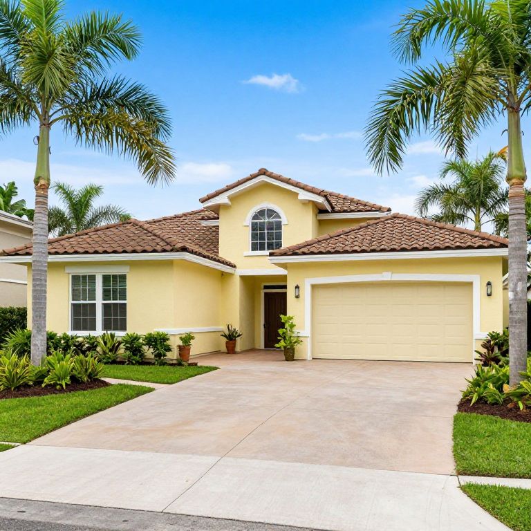 Tropical Single-Story Stucco Home