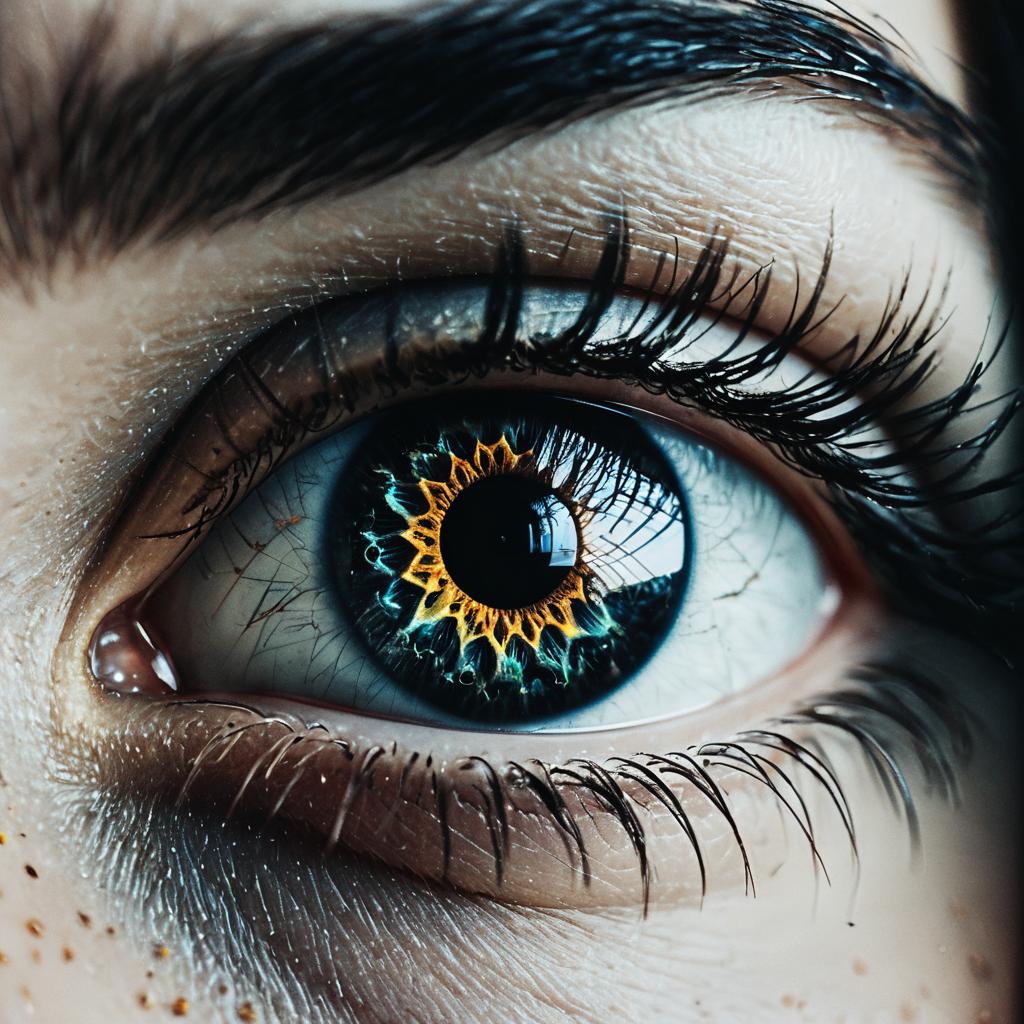 Patience Double-Exposure, insanely detailed and intricate, hypermaximalist, elegant, ornate, hyper realistic, super detailed, close up portrait of a beautiful eye, in the black pupil of which you can see the universe shining,,sharp focus,masterpiece,high resolution,photorealistic, 28k resolution#,
