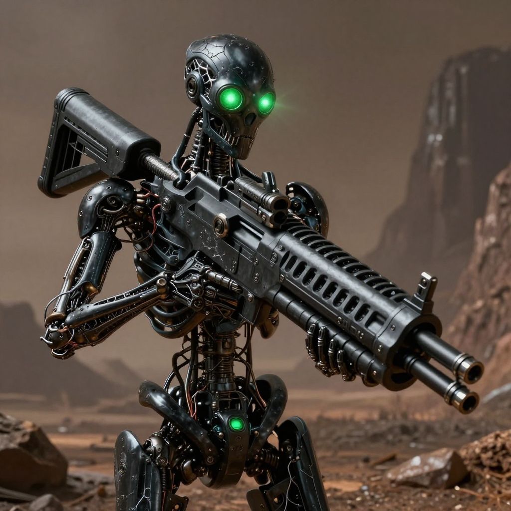 Nuclear rifle, weird obsidian skeleton, black color, fractal wires(13:2, internal), biomechanich, h., r.giger, ultrarealistic, nvidia graphics, lens flare, high detailed, hd, high definition, vivisdcolor, green light in the eyes, biomechanic fractal wires(12:2, internal) brown sci-fi landscape background, random camera view.