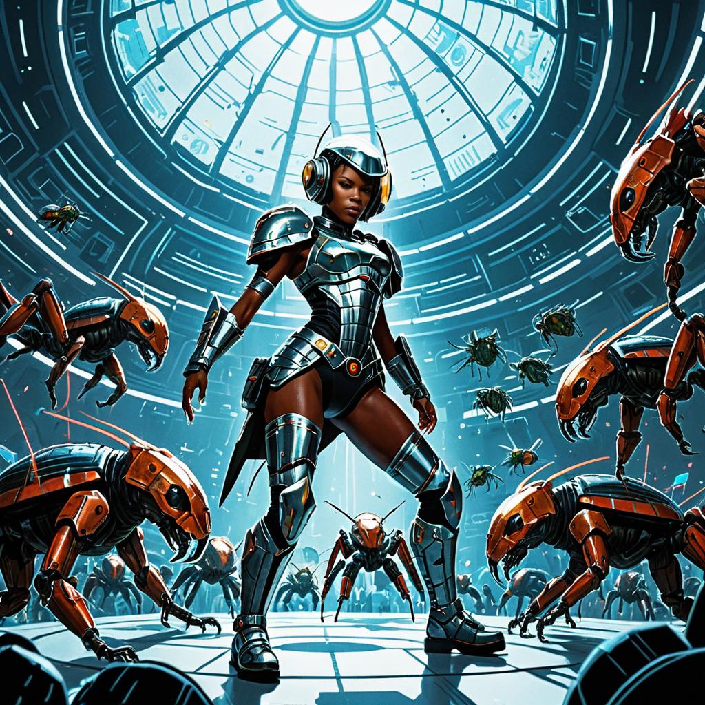 Full body space explorer in sleek silver android displacement suit standing in bioluminescent jungle on an alien planet, deep focus, intricate, elegant, highly detailed, digital painting, artstation concept art, matte, sharp focus, illustration, d & d fantasy, hearthstone, art by artgerm, greg rutkowski and alphonse mucha