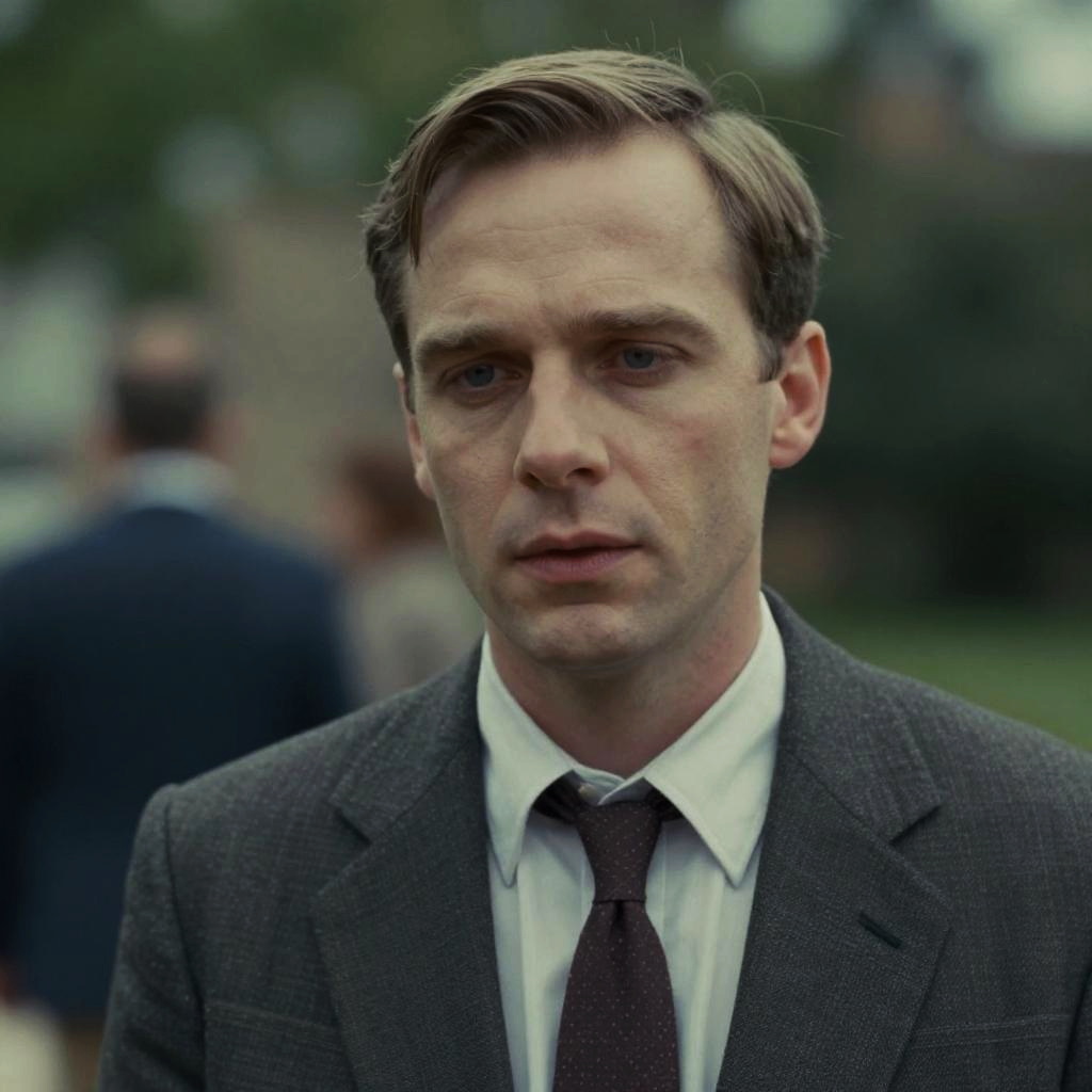 Cinematic photo A still shot from a movie reminiscent of a Wes Anderson or Stanley Kubrick film captures the portrait of an ((man)) . The analog-style cinematography adds a layer of depth and artistic quality to the scene. . 35mm photograph, film, bokeh, professional, 4k, highly detailed