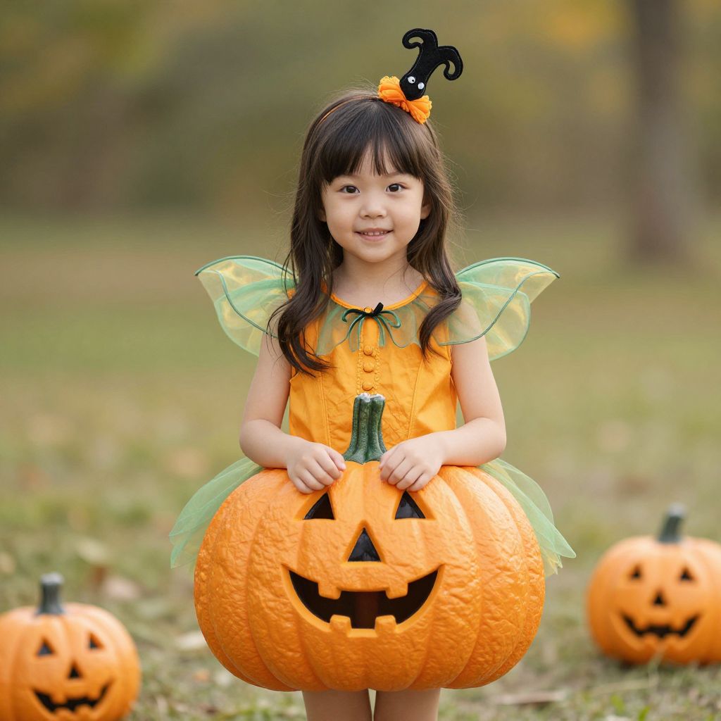 Pumpkin Fairy Costume, young girl dressed in a costume of a pumpkin