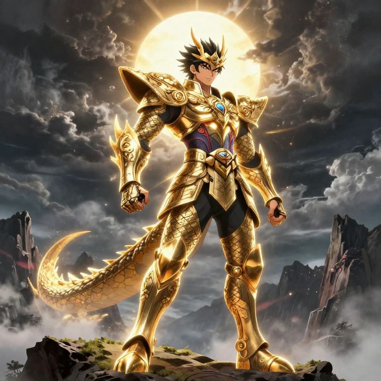 Gigachad god in golden armor, wielding thunderbolts, surrounded by swirling storm clouds, godlike strength and charisma, hyper-realistic, cinematic lighting