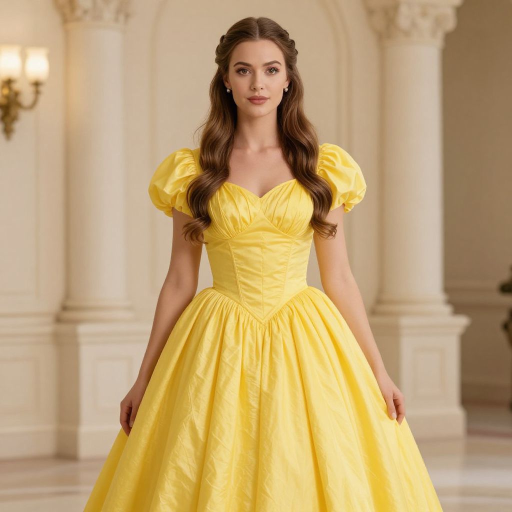 Anastasia Yellow Dress Costume, woman with long hair wearing a yellow dress