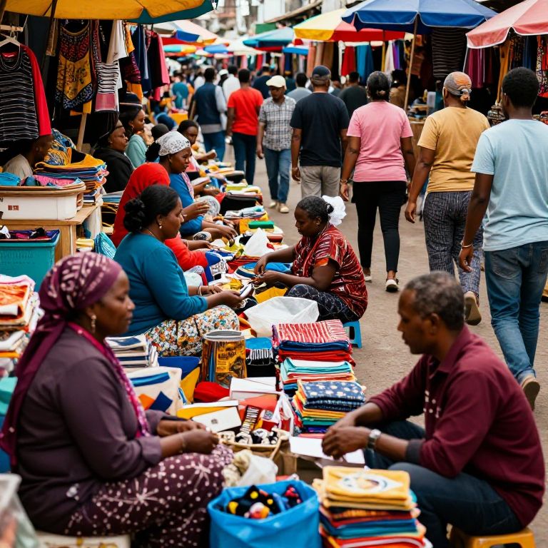 Thepeopleimage illustrating a multicultural market street bustling with vendors and shoppers, rich textures, colorful stalls, variety of goods, lively conversations, candid moments, intricate details in clothing and market goods, vibrant and immersive environment