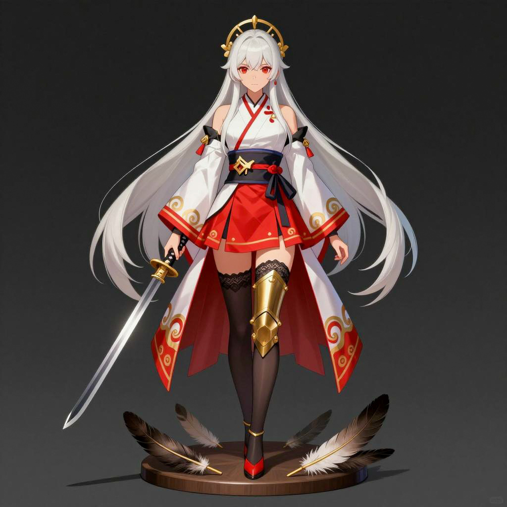 Hana (fire emblem), fire emblem, 1girl, brown eyes, brown hair, long hair, japanese clothes, katana, headband, by artist kiona (giraffe kiona), animagine