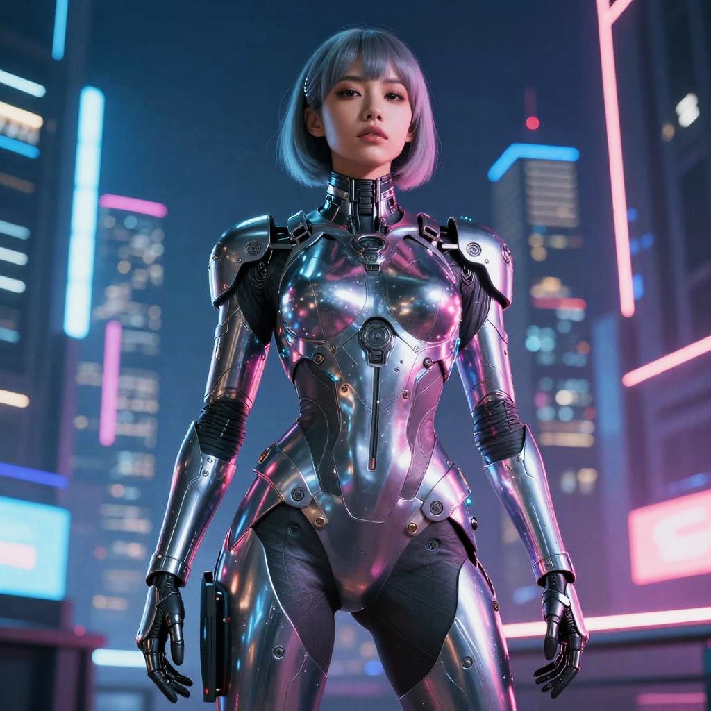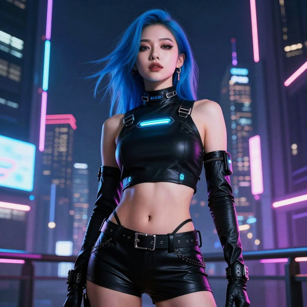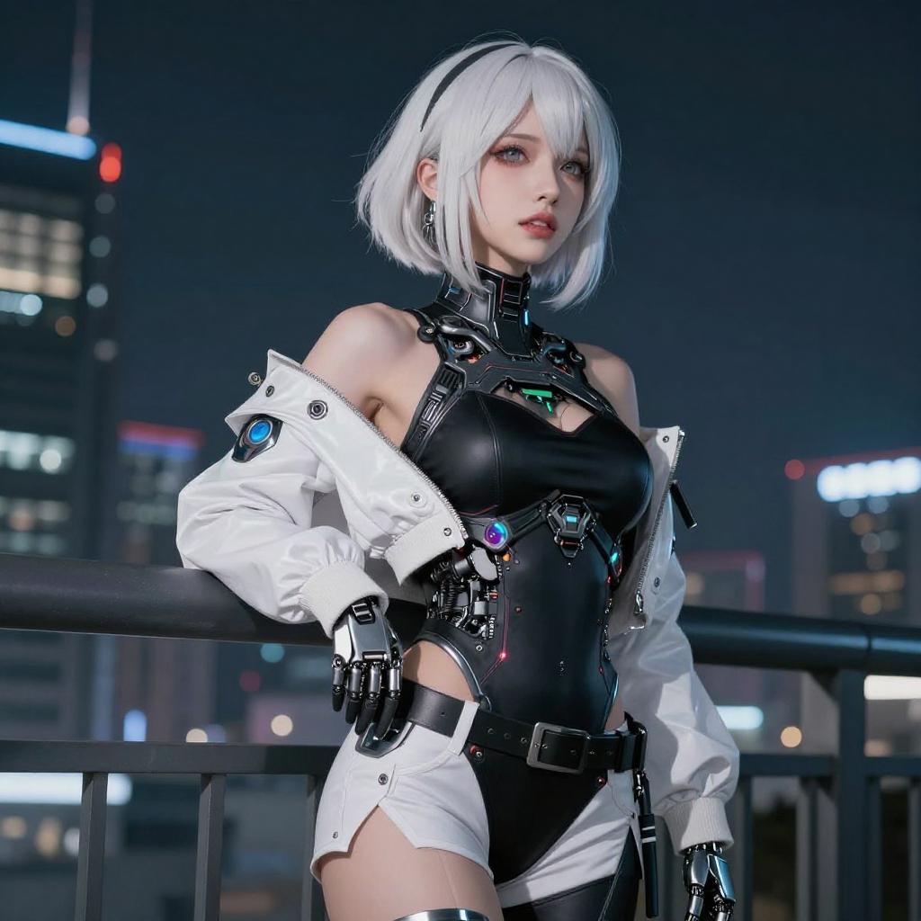 Cyberpunk Girl Cosplay in Night Setting