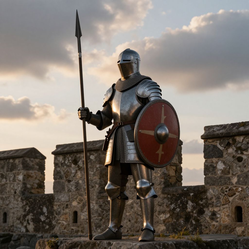 Vigilant Medieval Guardsman at Sunset