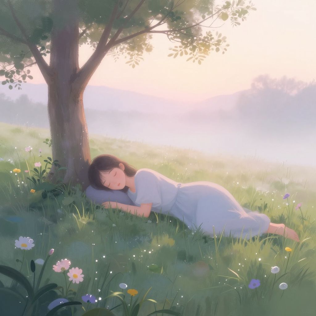Fefa depicted as a serene forest spirit, surrounded by glowing fireflies and ancient trees, soft pastel colors, magical ambiance, detailed natural elements like flowers, moss, and gentle streams