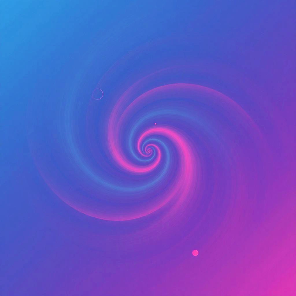 Digital abstract art featuring a swirling spiral pattern with vivid gradients of blue, purple, and pink. The image exhibits smooth transitions between colors, creating a hypnotic and otherworldly visual effect with soft light and subtle geometric shapes.