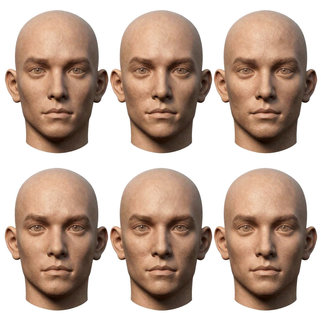3d modeling reference of a realistic human face, multiple angles, subtle skin textures, natural lighting, high detail for facial features, aimed at character modeling and texture painting