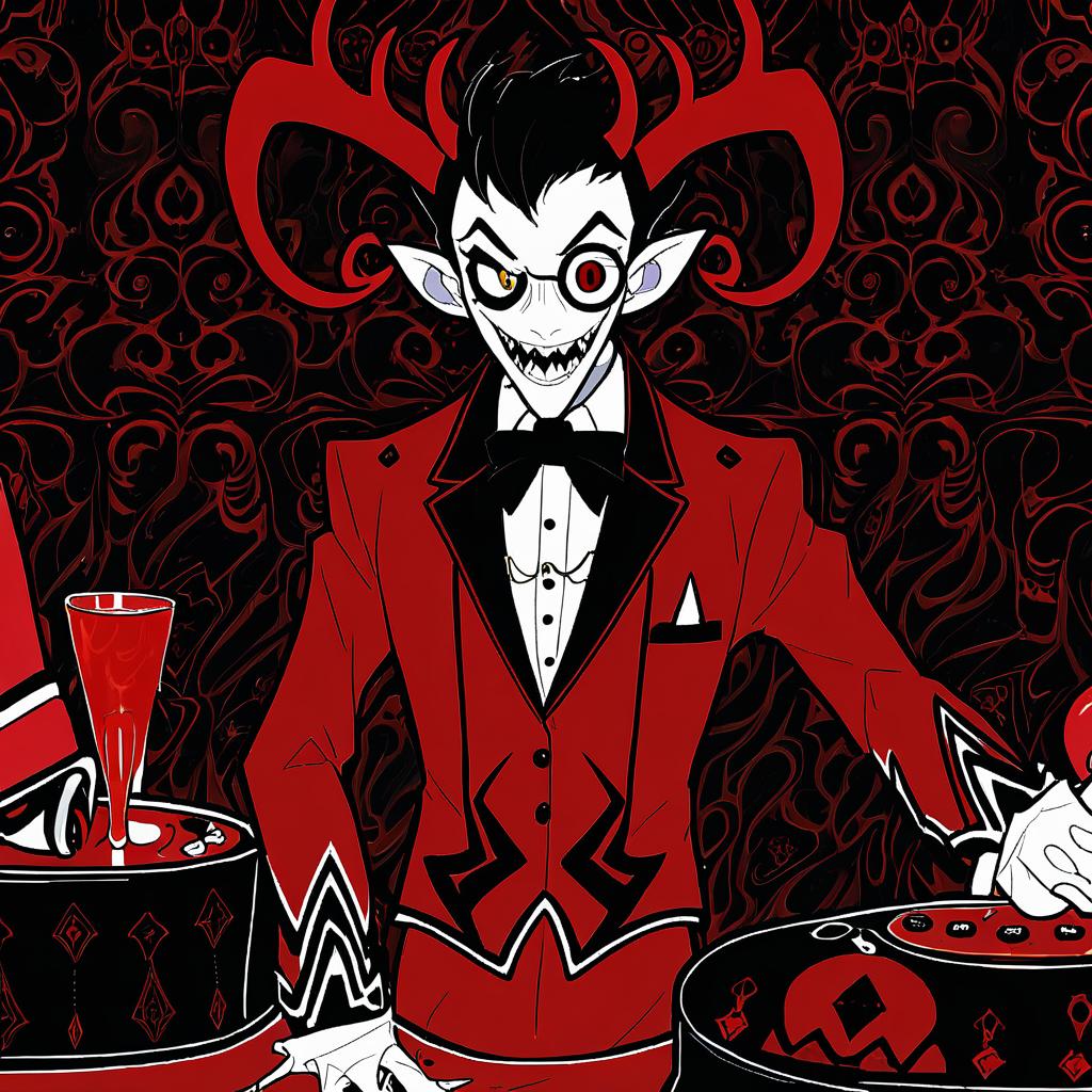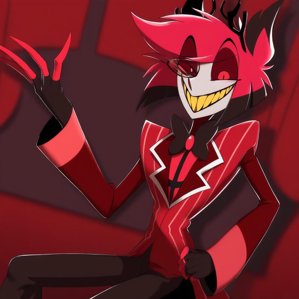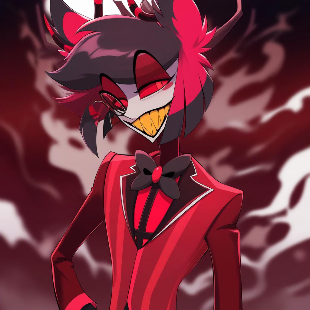 Illustration of Alastor (hazbin hotel), hazbin hotel in the style of Yuuyuu (yuuki1771)