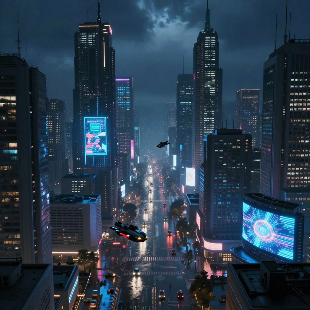 Futuristic Bluelook Cyberpunk Cityscape